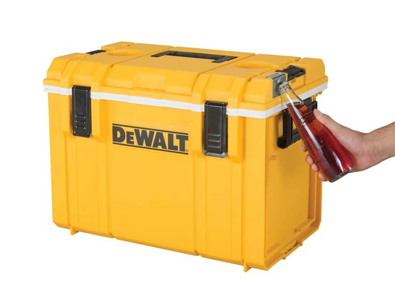 The DeWalt TOUGHSYSTEMβ’ DS404 Cooler Box is fitted with commercial grade foamed PU insulation that provides 5 day ice retention without any batteries or power.Β
