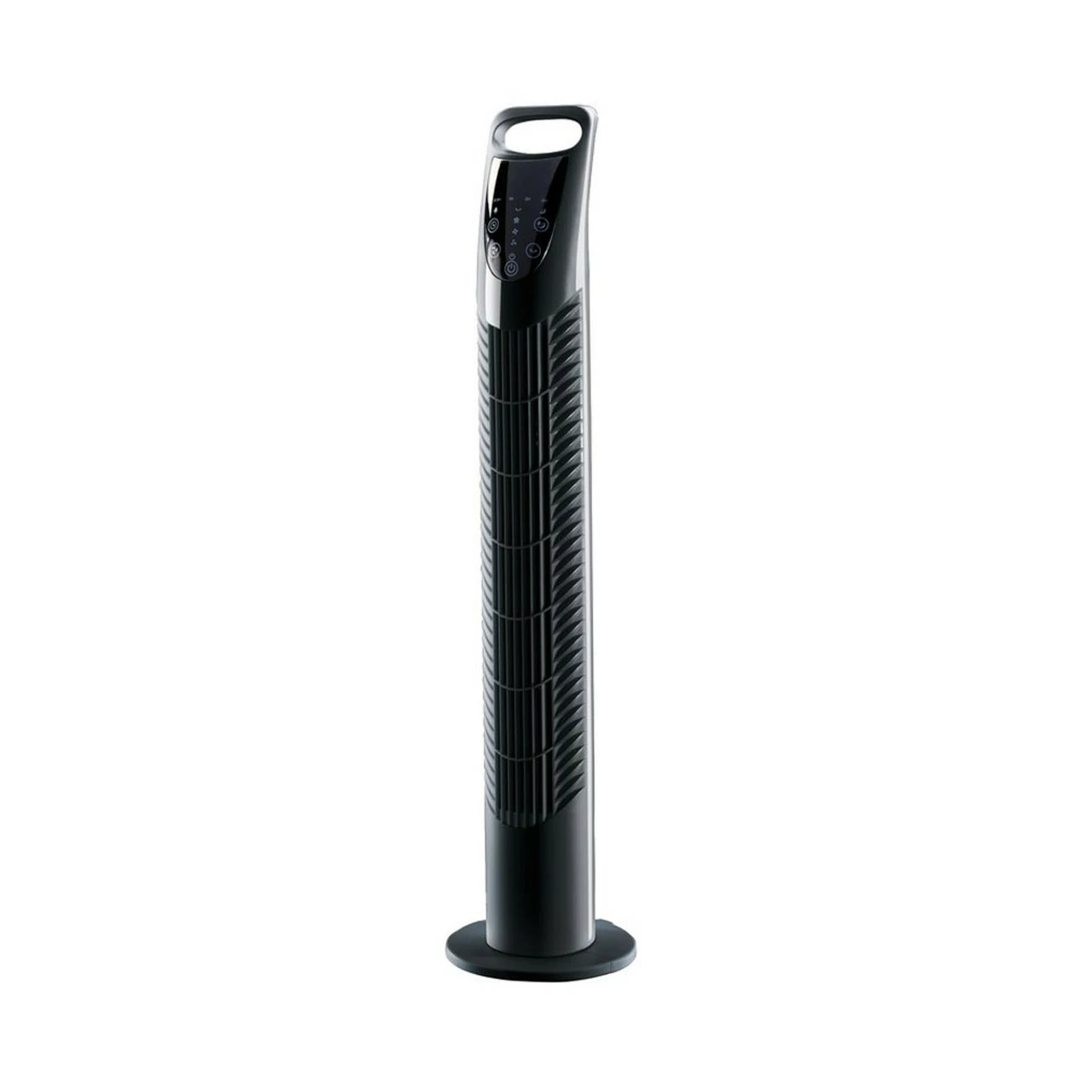 Three speed tower fan with powerful output. Operated by remote control (supplied with 1 x CR2025 battery) with a built-in timer and oscillation function.