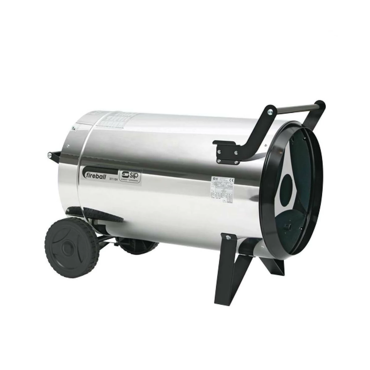 The SIP Fireball 3711DV Propane Space Heater is a dual voltage propane space heater designed for home, trade, and professional applications, with a stainless steel construction and safety grille.